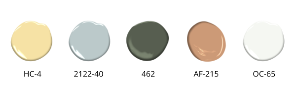 (Pictured Left to Right: Hawthorne Yellow, Smoke, Vintage Vogue, Italianate and Chantilly Lace)